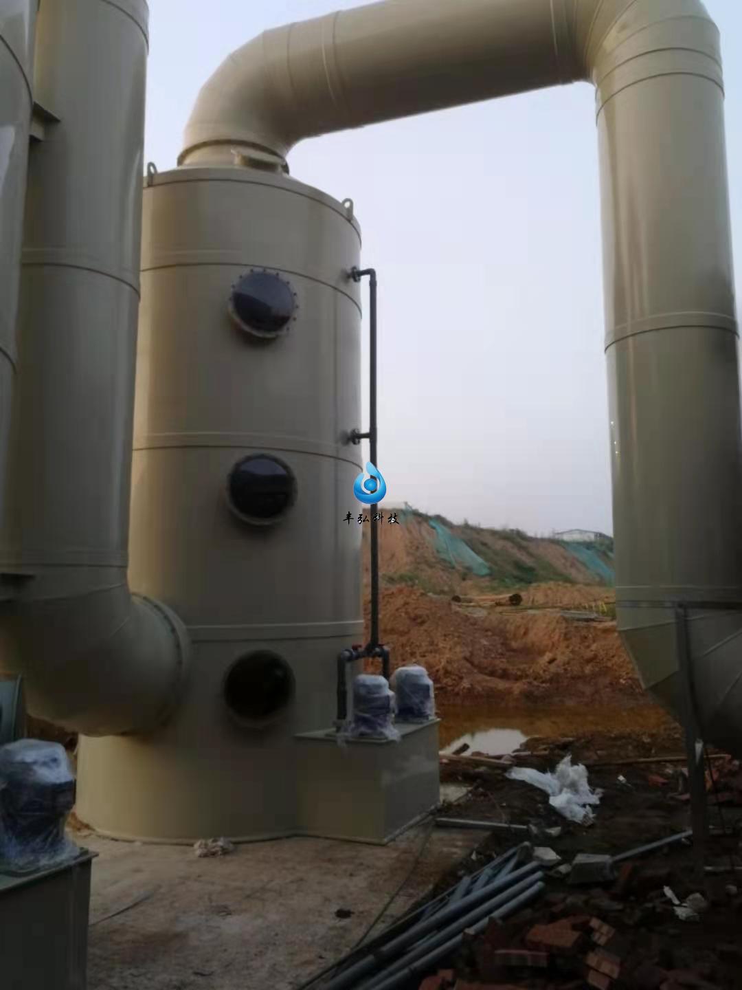 廢氣由加堿液的洗滌塔堿洗后進入加植物液的洗滌塔內,再經(jīng)過一級噴淋反沖洗,去除部分有害氣體成分并中和廢氣中難聞異味。