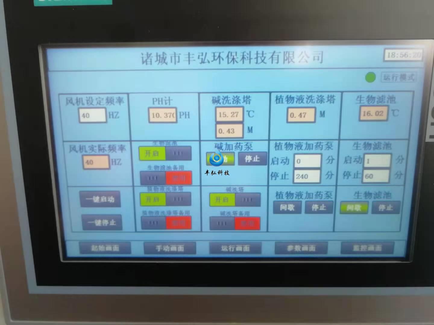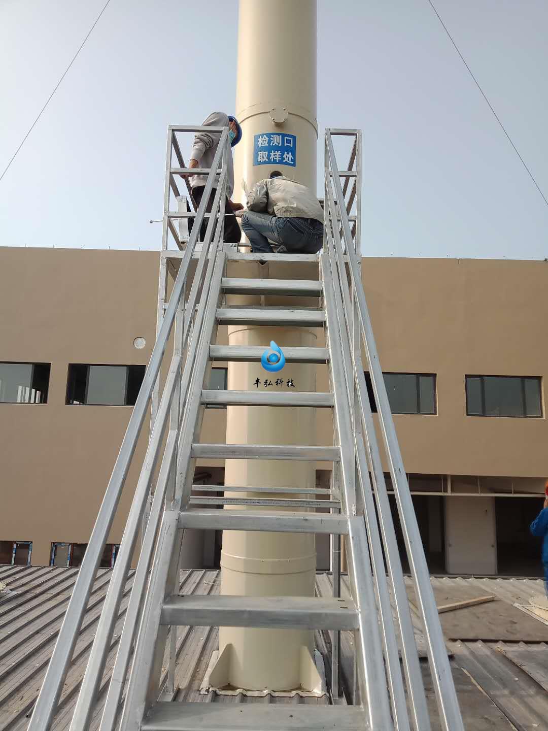 由配藥裝置在洗滌塔內加入適量堿液,用耐腐循環(huán)泵將塔內稀釋的堿液經(jīng)過一級噴淋反沖洗,進行滅菌處理,中和廢氣中的酸性物質,使廢水PH值達到中性。