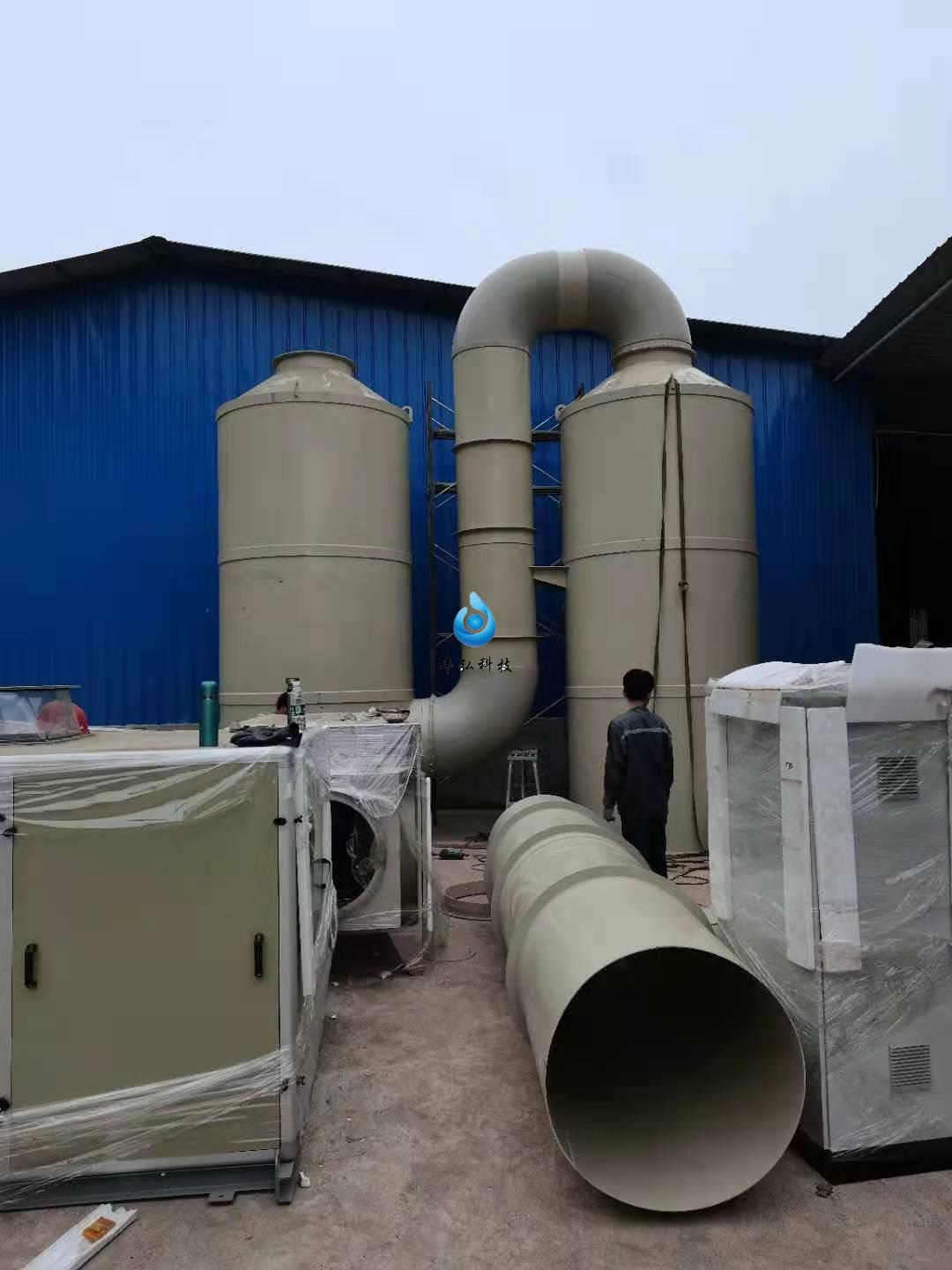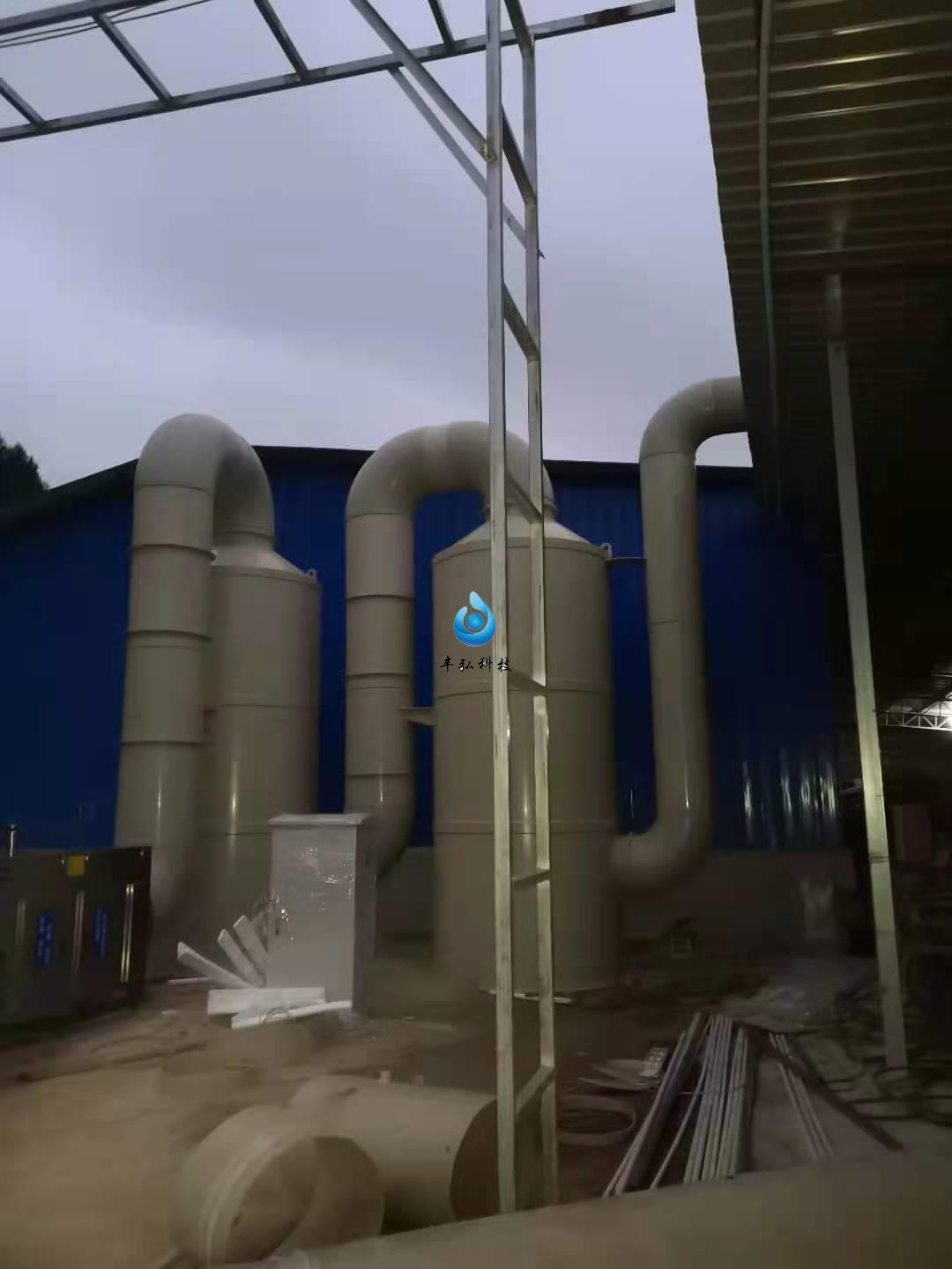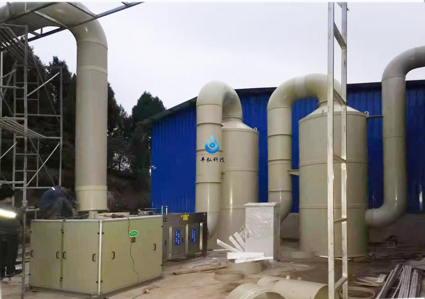 廢氣凈化流程:原有設(shè)備→酸洗滌→堿洗滌→復(fù)合光觸媒催化氧化系統(tǒng)=達(dá)標(biāo)排放。