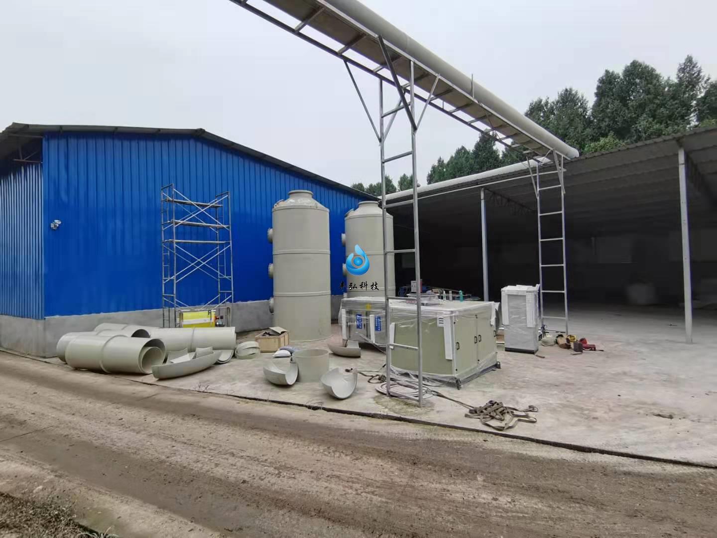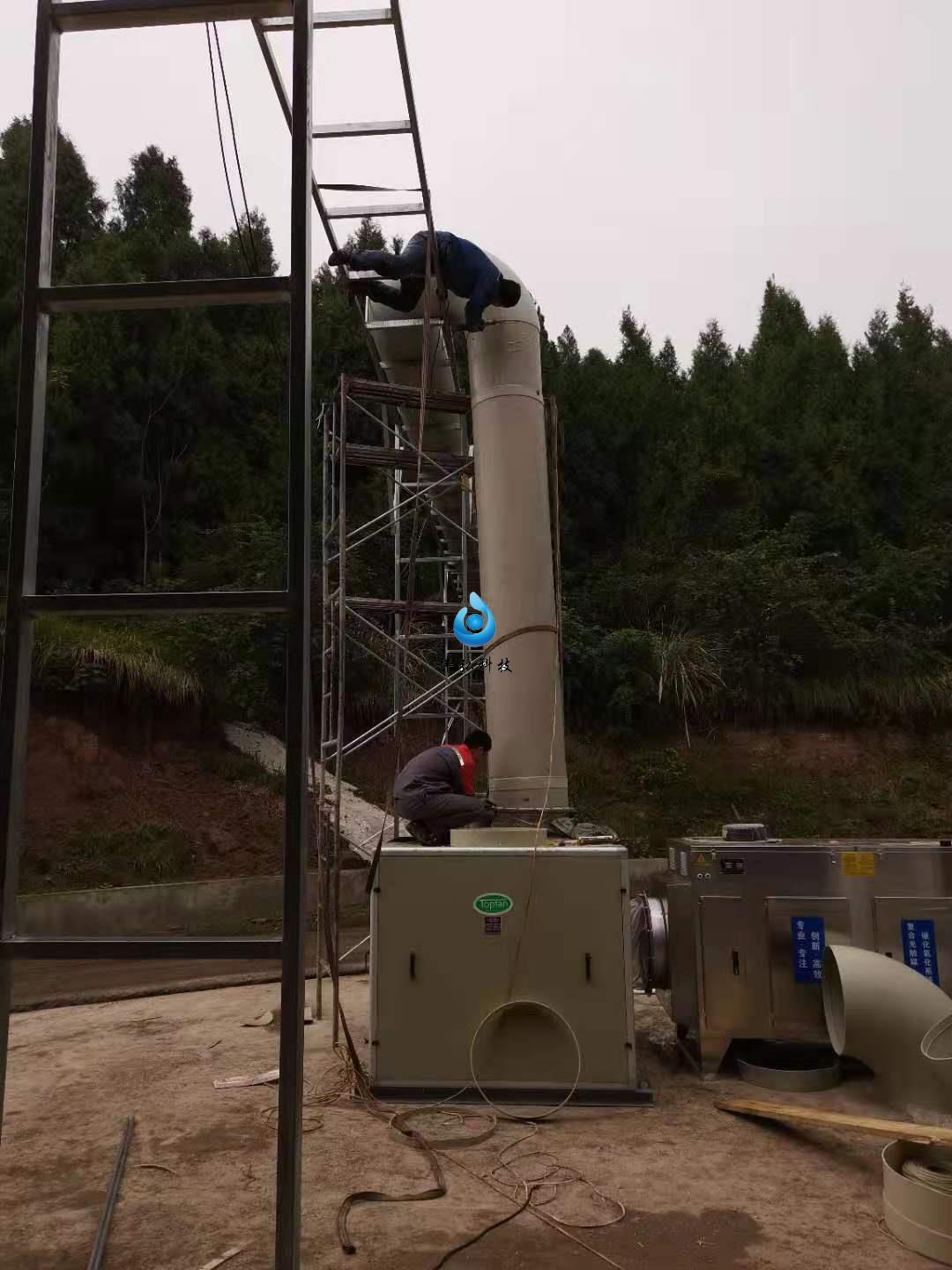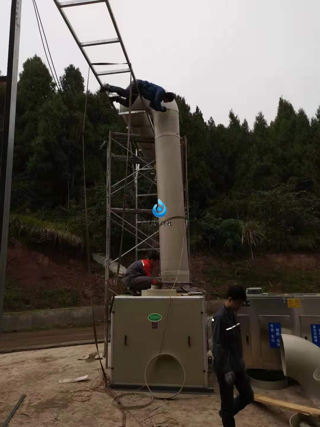 廢氣凈化流程:原有設(shè)備→酸洗滌→堿洗滌→復(fù)合光觸媒催化氧化系統(tǒng)=達(dá)標(biāo)排放。