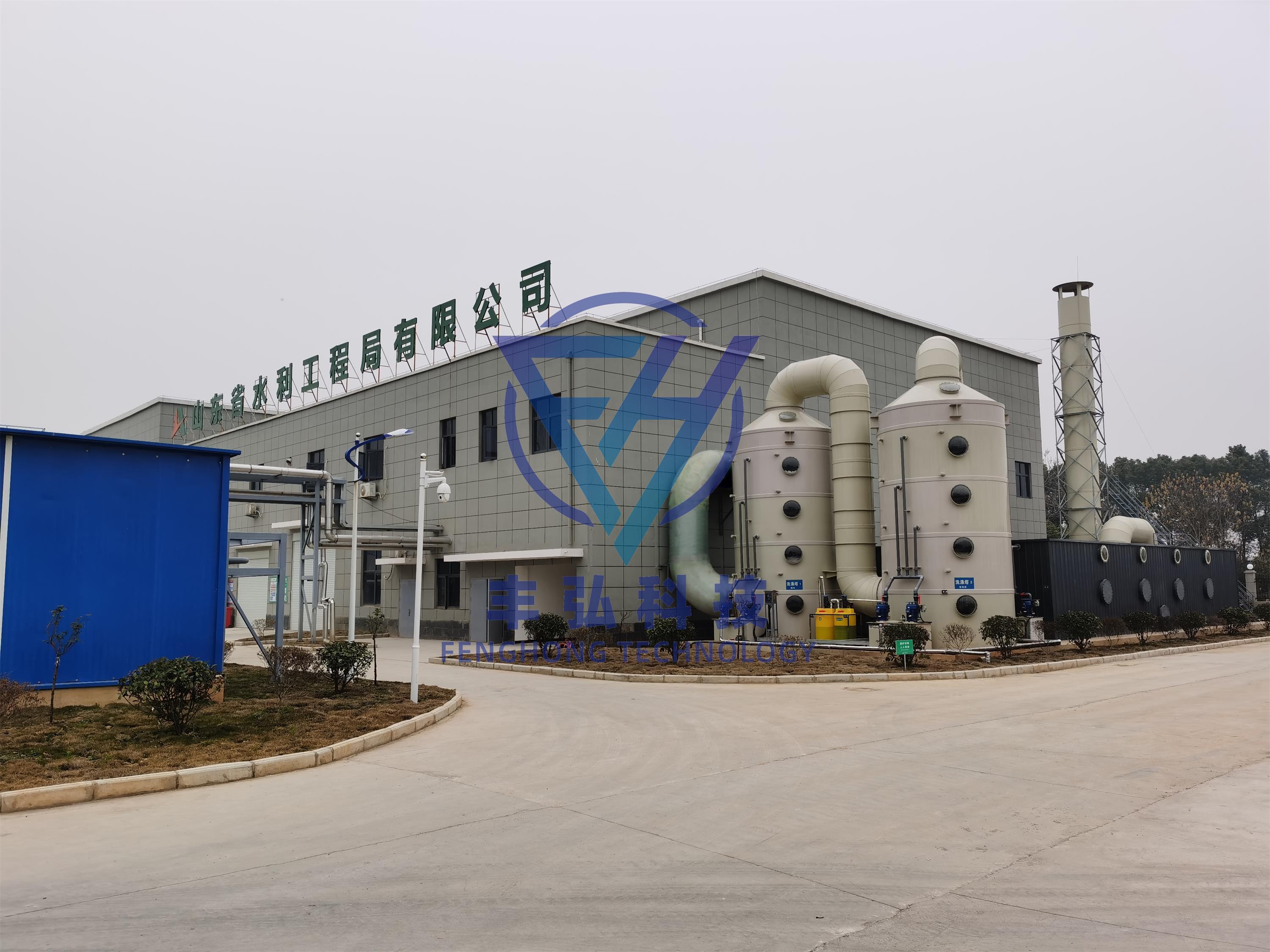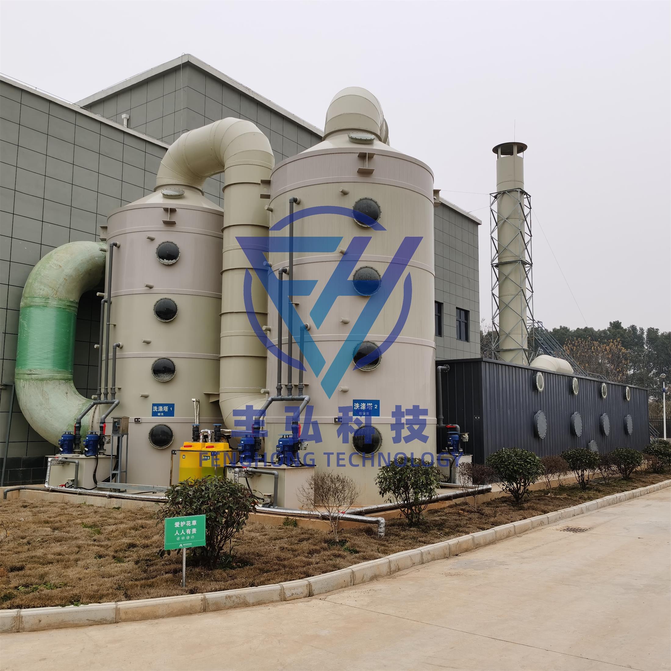 氣體經(jīng)過收集管道進(jìn)入洗滌塔內(nèi),臭氣從洗滌塔的底部送入,填料表面與噴淋液在逆流連續(xù)、充分接觸條件下進(jìn)行傳質(zhì),池內(nèi)填料層作為氣液兩相間接觸的傳質(zhì)介質(zhì),底部裝有填料支撐板,填料以無序方式堆置在支撐板上噴淋液從池頂經(jīng)液體分布噴淋到填料上,并沿填料表面流下。臭氣水洗噴淋,去除臭氣中的粉塵、NH3以及少量H2S、CH3SH等氣體,氨氣溶于水形成堿性溶液,循環(huán)噴淋可去除臭氣中的H2S,同時(shí)吸收少量有機(jī)臭氣污染物。噴淋洗滌池上設(shè)置了監(jiān)視窗和檢修孔以便于人員進(jìn)行監(jiān)視洗滌塔的工作狀況是否正常以及及時(shí)更換老化的填料。為了避免氣排放夾帶液滴,在凈化裝置頂部設(shè)置氣水分離器。池內(nèi)噴淋液循環(huán)使用,在使用過程中會(huì)有部分損失和消耗,需要定期更換噴淋液。噴淋池也可根據(jù)實(shí)際工況靈活添加或更換化學(xué)吸收劑,但是一定要注意化學(xué)廢水帶來二次污染。