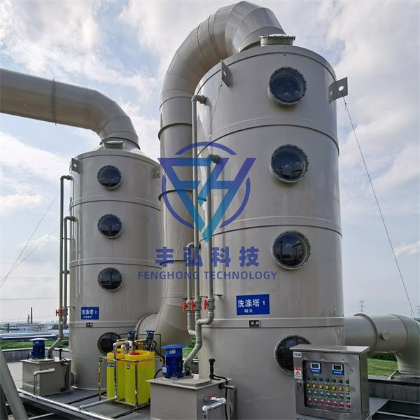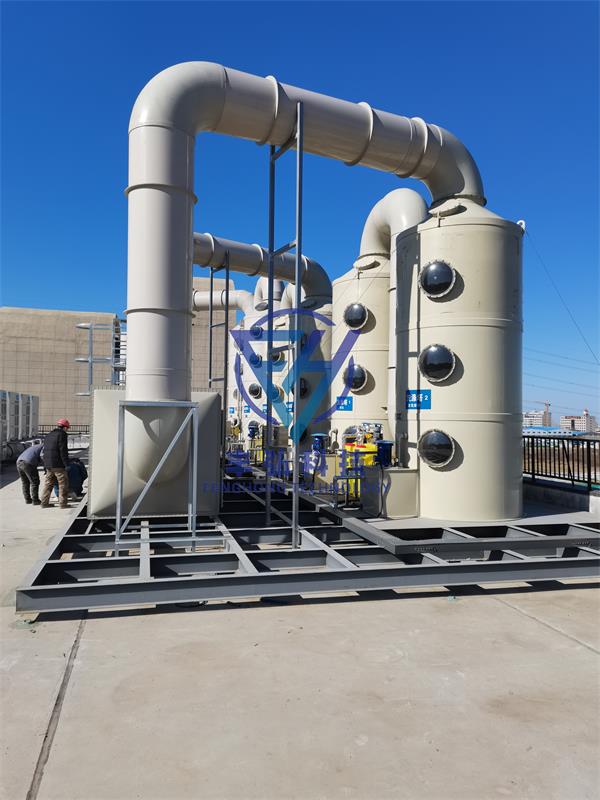 廢氣凈化塔主要的運作方式是廢氣由風(fēng)管引入凈化塔,經(jīng)過填料層,廢氣與氫氧化鈉吸收液進行氣液兩相充分接觸吸收中和反應(yīng),廢氣經(jīng)過凈化后,再經(jīng)除霧板脫水除霧后由風(fēng)機排入大氣。吸收液在塔底經(jīng)水泵增壓后在塔頂噴淋而下,后回流至塔底循環(huán)使用。
